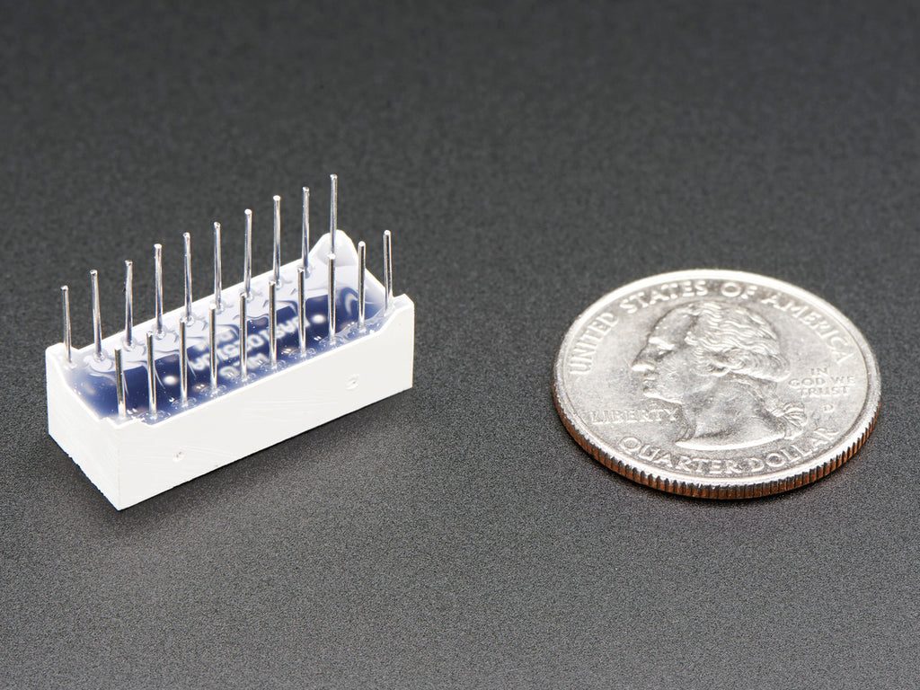 Only 1" long, it is quite visible but not so large it wont plug into a breadboard! 10 LEDs are contained in the plastic body. This display is bright, beautiful and funky with nice diffused rectangular lenses for a striking look. There are 20 pins,10 on each side, with 0.1" spacing so you can easily plug it into a breadboard with plenty of space for wiring left over.