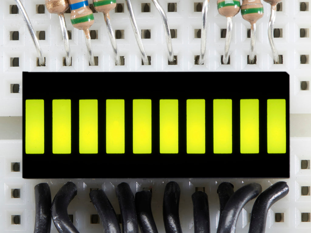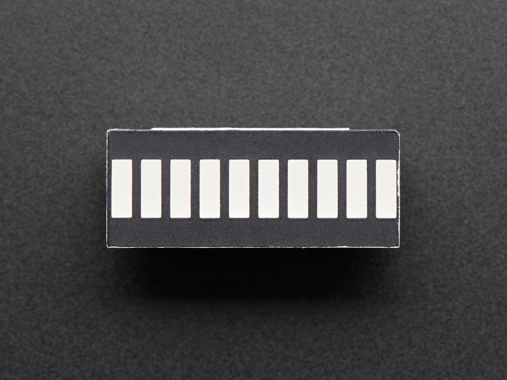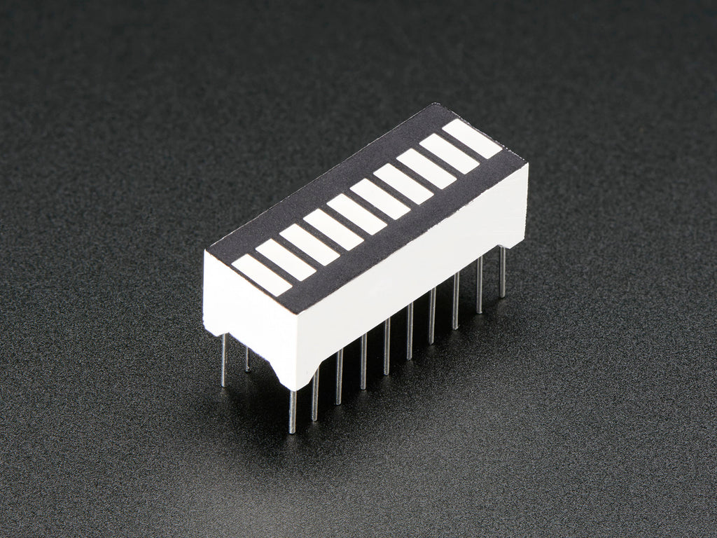 Make a small linear display with a glowing yellow-green color using this elegant LED bargraph. Only 1" long, it is quite visible but not so large it wont plug into a breadboard! 10 LEDs are contained in the plastic body. This display is bright, beautiful and funky with nice diffused rectangular lenses for a striking look. There are 20 pins, 10 on each side, with 0.1" spacing so you can easily plug it into a breadboard with plenty of space for wiring left over.