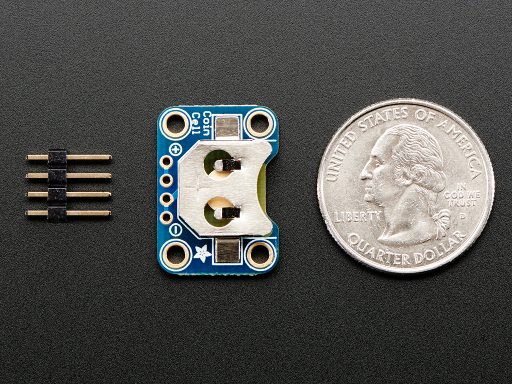Comes with one fully assembled and tested coin cell battery holder and a small stick of 0.1" header so you can solder it on and plug into a breadboard.