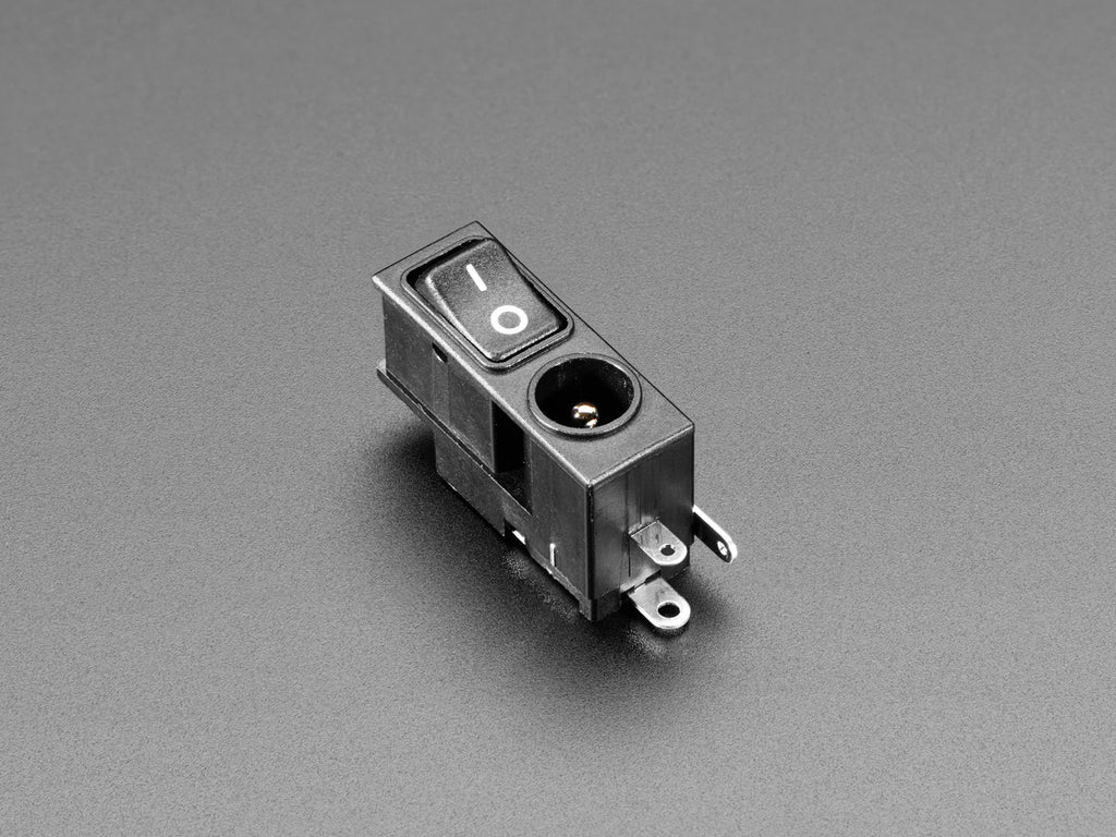 This brilliant invention is a blessing for makers designing or using boards with standard 2.1mm DC barrel jacks. Many devices opt against a proper power switch, for size or cost or other design reasons. So, you're expected to unplug when not in use. But you want something a little fancier! This 2.1mm DC Power Jack with Rocker Switch has the same PCB layout as classic non-switched jacks but has a li'l extra on top - a labeled slide switch!