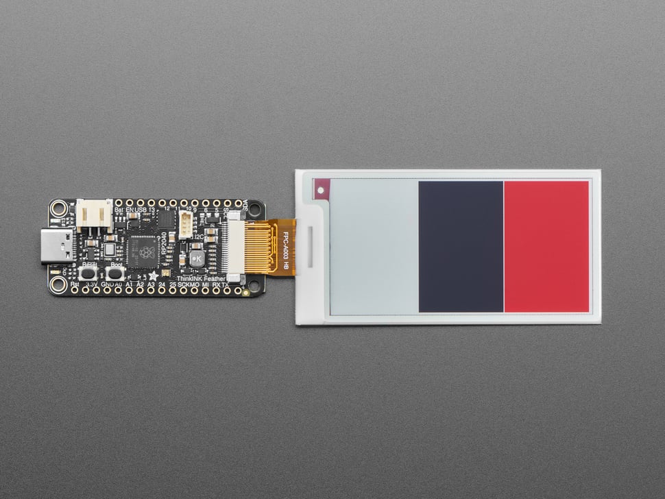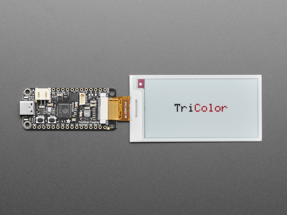 - Feather RP2040 ThinkInk - solderless plug-and-play solution with Arduino or CircuitPython support. Definitely the easiest way to get started, and is what we show in the demo above