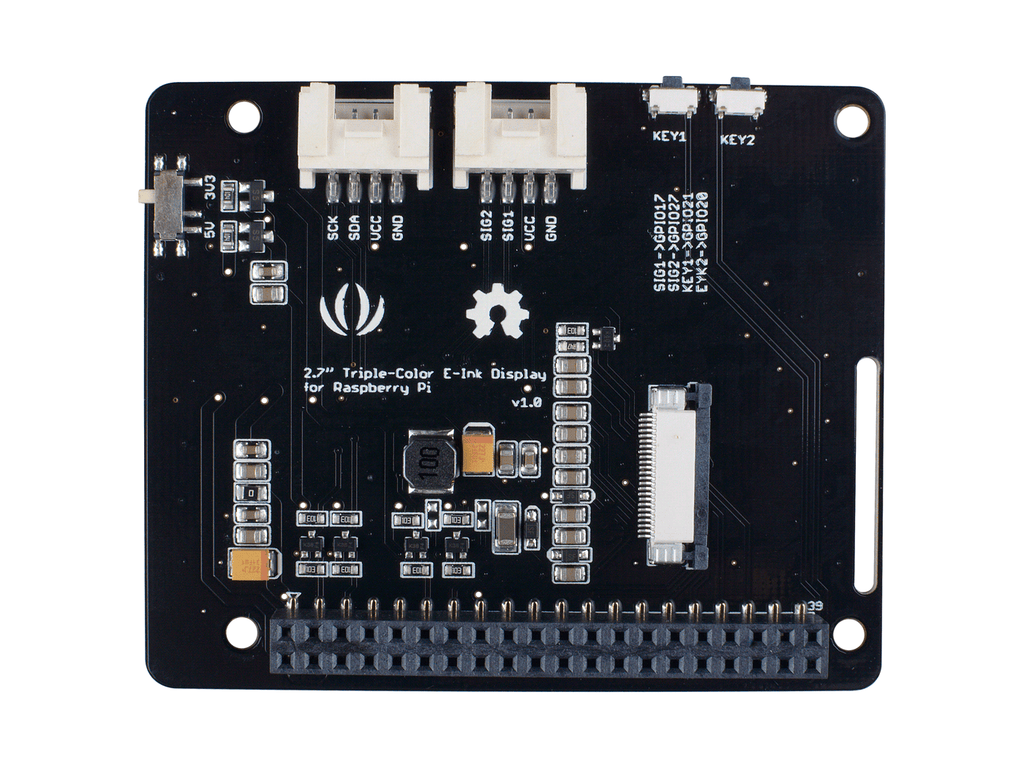 We've released two e-ink display for Arduino, the Grove - Triple Color E-Ink Display 2.13'' and the Grove - Triple Color E-Ink Display1.54'', today we bring you the 2.13'' Triple-Color E-Ink Display for Raspberry Pi and the 2.7'' Triple-Color E-Ink Display for Raspberry Pi. Actually, they can work as a pi hat, you just need to plug those displays into your Raspberry pi via the Raspberry pi GPIO header. The E-Ink communicates with the Raspberry pi with the 4-wire SPI interface.