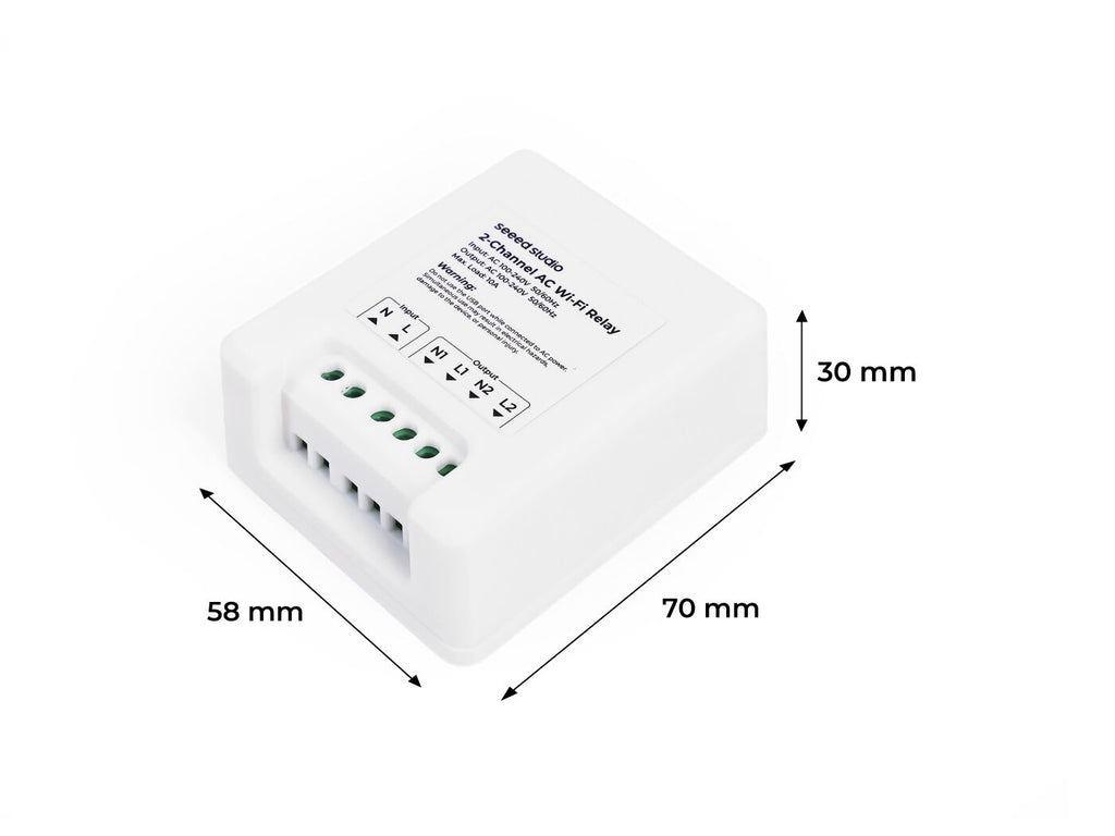 2-Channel Wi-Fi AC Relay with 3D-Printed Enclosure (White) | x1 |