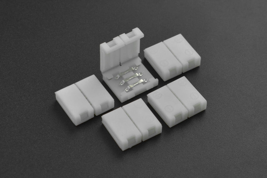 This 3-Pin solderless strip connector with a snap-down design makes a firm and easy connection of 10mm wide 3-wire RGB LED strips. Just align and snap them together, job done!