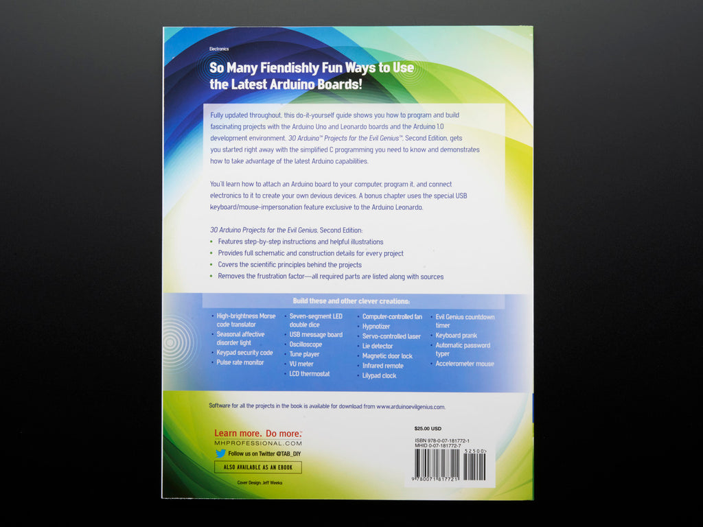 This wickedly inventive guide shows you how to program and build a variety of projects with the Arduino microcontroller development system. Covering Windows, Mac, and Linux platforms, 30 Arduino Projects for the Evil Genius gets you up to speed with the simplified C programming you need to know--no prior programming experience necessary.