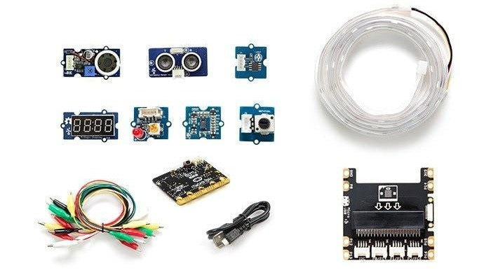 The Micro:bit hardware is the size of a business card and conveniently houses LED matrix, temperature and light sensors, buttons, accelerometer, magnetic compass and Bluetooth communication modules. However, the Grove Inventor Kit extends a Micro:bit's capabilities by addition of sensors, speaker and display devices and let you create projects mimicking real-life systems.