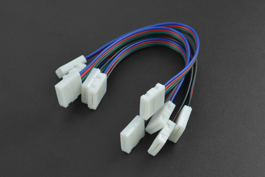 This 4-Pin solderless strip connector comes with wire and adopts snap-down design at both ends, which makes a firm and easy connection of 10mm wide 4-wire RGB LED strips. Just align and snap them together, job done!