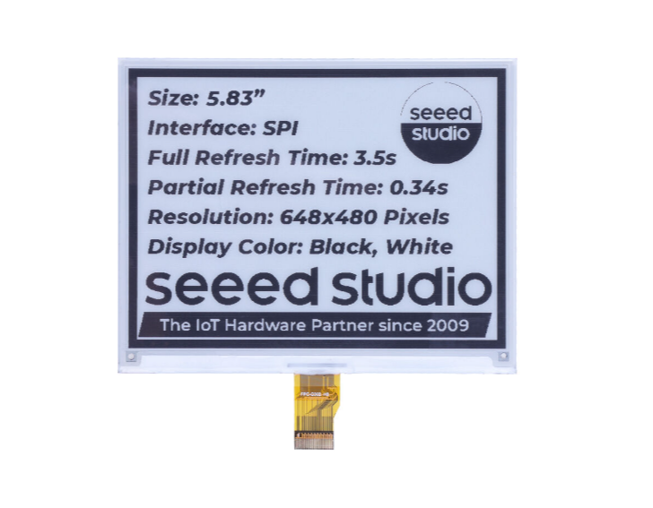 The 5.83" Monochrome ePaper Display presents a cutting-edge, power-saving solution for a variety of projects. It provides 648x480 pixels of resolution, delivering long-lasting, crisp black-and-white visuals on a 5.83" diagonal display. Furthermore, this display offers rapid refresh rates and superb contrast, lending itself to a multitude of applications, such as e-readers, smartwatches, and other handheld gadgets.