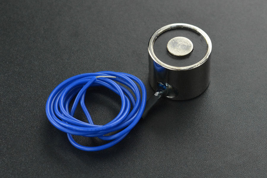 This is a DC sucker type electromagnet with 3kg holding force and 1W power. It should be operated at 5V. The magnetic poles of the electromagnet can be changed by swapping the negative and positive poles of the input power. With a pretty small body, this electromagnet can be applied to a DIY electromagnetic lock, smart storage cabinet, and intelligent door, etc.