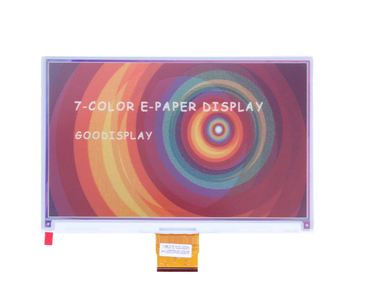 Introducing a 7.3" reflective e-paper display module with an active matrix TFT substrate. Showcasing 800 x 480 pixels, it offers 7-color, including black, white, red, yellow, blue, green, and orange, based off a corresponding lookup table. The integrated panel circuitry offers gate & source drivers, a timing controller, an oscillator, a DC-DC boost circuit, frame buffer memory, and controls for VCOM & BORDER. Quick refresh time of 32 seconds for full-screen ensures a smooth & dynamic display.