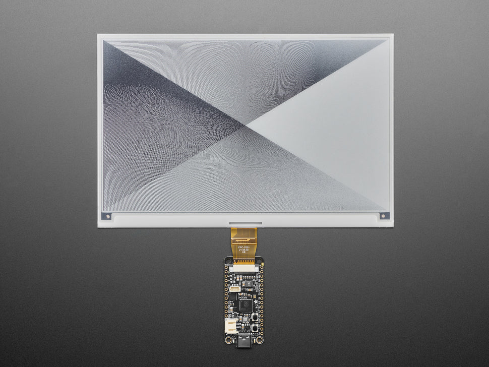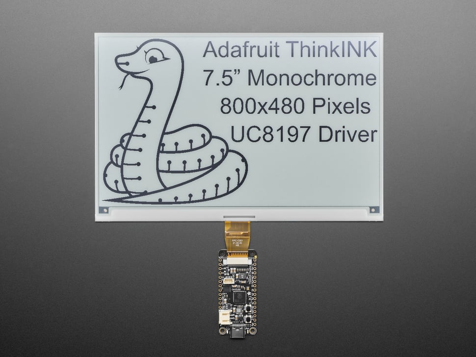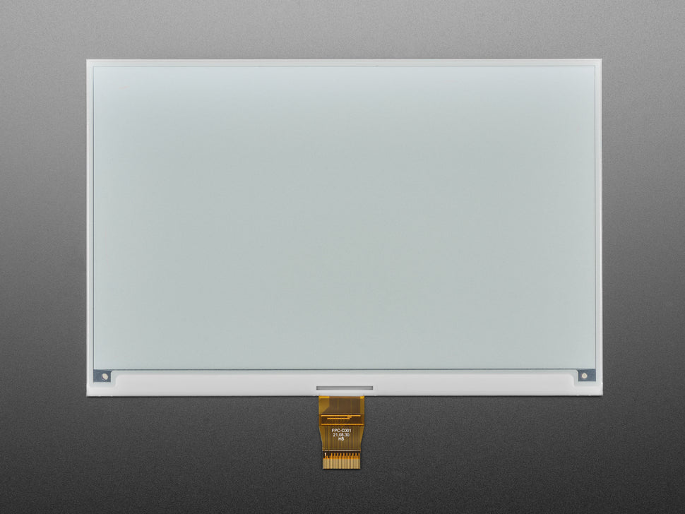 This is a 7.5" monochrome display. It has 800x480 black ink pixels and a white-ish background. It uses the UC8197 chipset, so make sure whatever firmware code you are planning to use has support for it. The Arduino library we wrote does all the work for you; you can just interface with it as if it were an Adafruit_GFX compatible display.