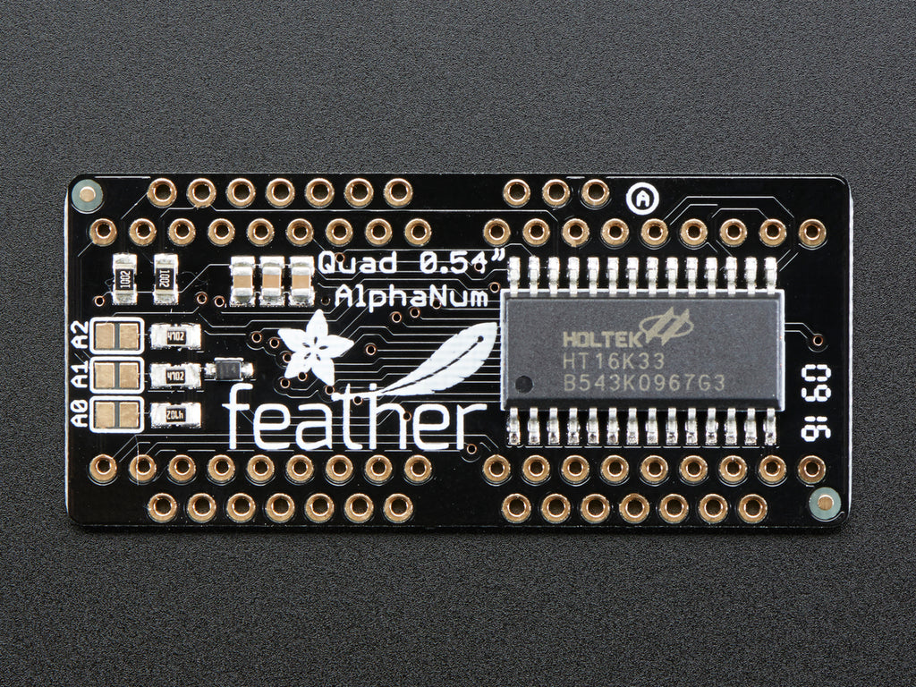 - A fully tested and assembled Adafruit 4-Digit 14-Segment Alphanumeric Display FeatherWing