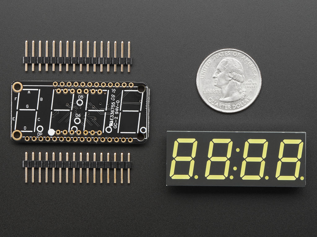 The 7-segment FeatherWing backpack makes it really easy to add a 4-digit numeric display with decimal points and even 'second colon dots' for making a clock.