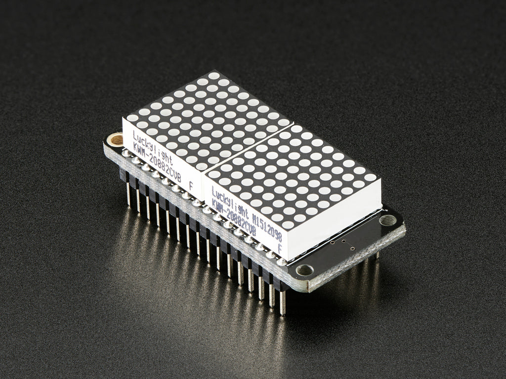 A bit of soldering is required to attach the two matrices onto the FeatherWing but its very easy to do and only takes about 15 minutes. Check out our tutorial for assembly instructions, pinouts, CircuitPython and Arduino library code, schematics and more!