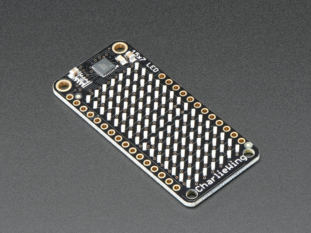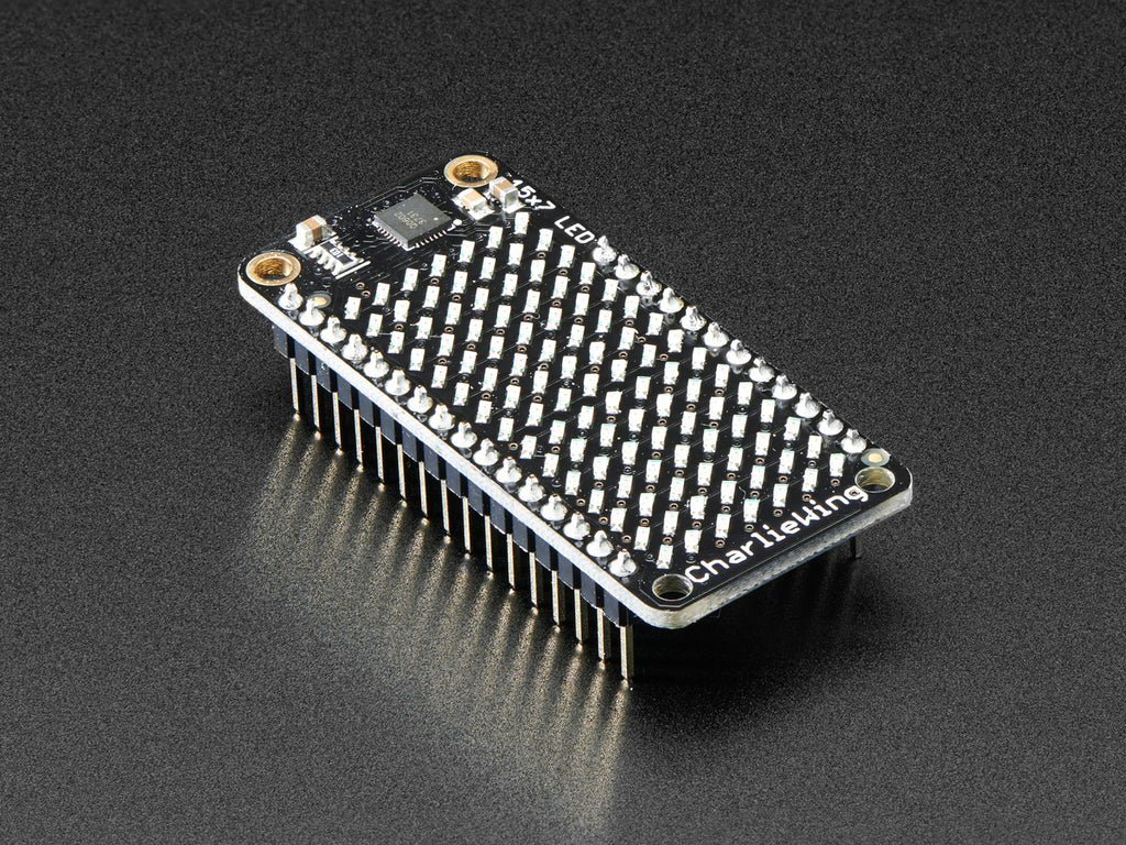 You wont be able to look away from the mesmerizing patterns created by this Adafruit 15x7 CharliePlex LED Matrix Display FeatherWing. This 15x7 LED display can be paired with any of our Feather boards for a beautiful, bright grid of 105 charlieplexed LEDs. It even comes with a built-in charlieplex driver that is run over I2C.