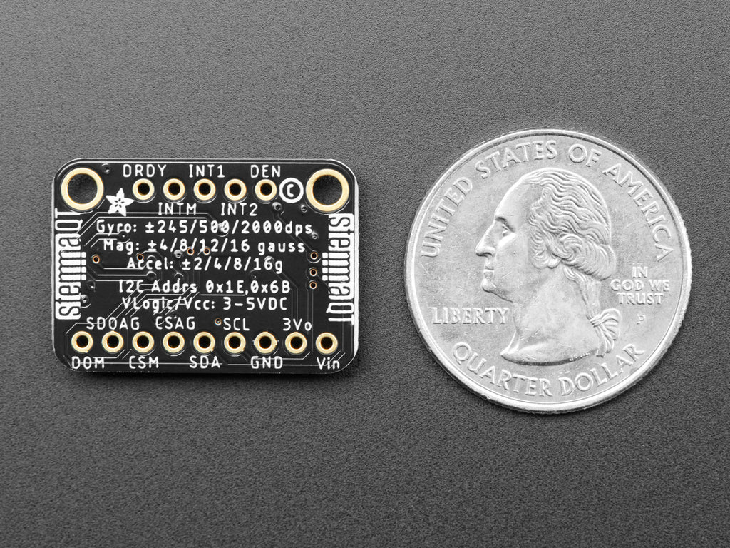 Add motion, direction, and orientation sensing to your project with this all-in-one 9-DOF sensor that is STEMMA QT ready for easy plug-n-play usage. Inside the chip are three sensors, one is a classic 3-axis accelerometer, which can tell you which direction is down towards the Earth (by measuring gravity) or how fast the board is accelerating in 3D space. The other is a 3-axis magnetometer that can sense where the strongest magnetic force is coming from, generally used to detect magnetic north. The third is a 3-axis gyroscope that can measure spin and twist. By combining this data you can REALLY orient yourself.