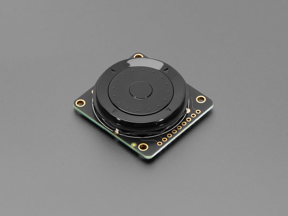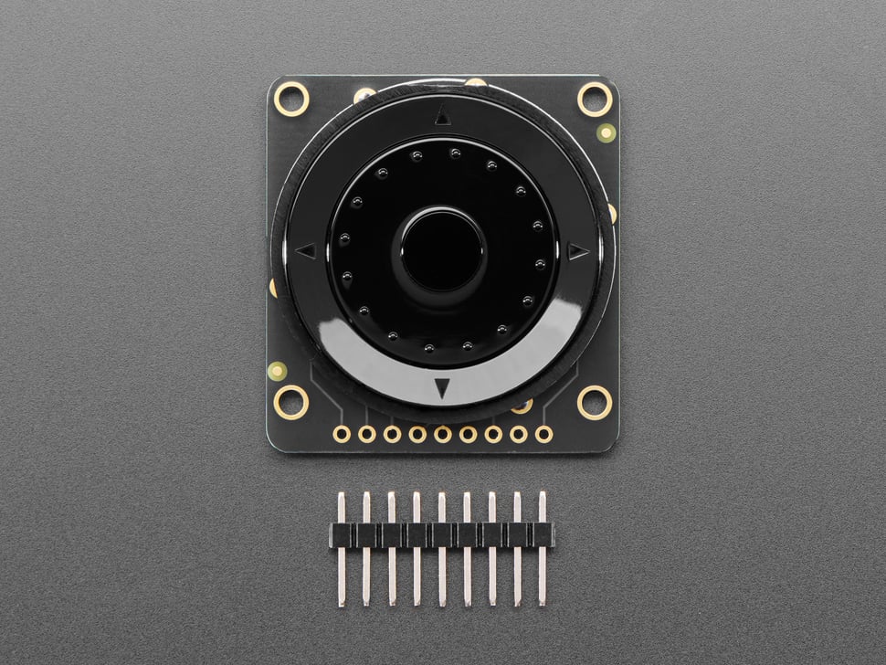 The ANO rotary encoder wheel is a funky user interface element is reminiscent of the original clicking scroll wheel interface on the first iPods. It's a nifty kit, but the pin-out is a little odd, so we made a handy breakout board that converts the funky pin set into a straightforward, breadboard-friendly header strip.