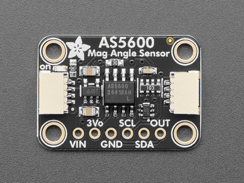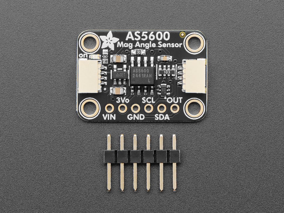 Add rotational sensing - without a mechanical connection - with the Adafruit AS5600 Magnetic Angle Sensor. Featuring the classic ams AS5600, this board can sense a rotating N/S magnetic field up to 3mm away from the chip body. These sensors are often used to create 'frictionless' rotary encoders or potentiometers, without the risk of mechanical failure or noise. Magnetic angle sensors get the best of 'both worlds': like rotary encoders they can rotate freely 360 degrees around, and like potentiometers, they have absolute location detection.