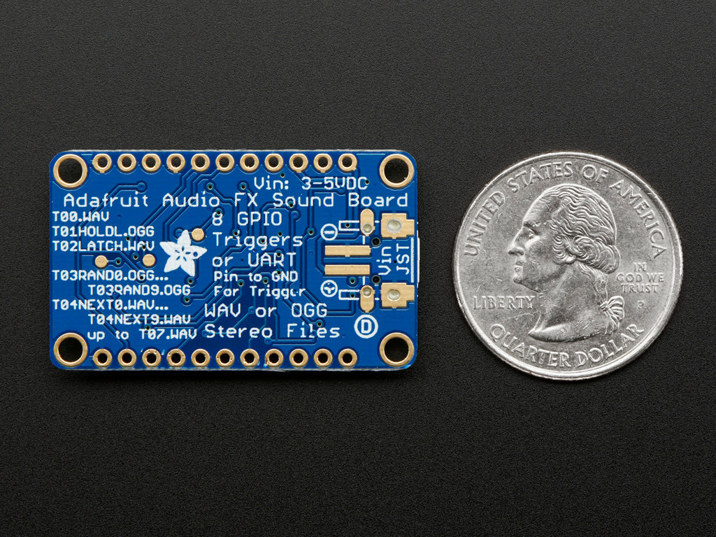 Don't get me wrong, I love the MP3 Music Maker shield and the Audio FX Sound Board + 2x2W Amp. And our Wave Shield is a dependable classic. But you either need an Arduino or they might be a little too big and powerful for your needs. So after a lot of engineering and tinkering we've come out with the Adafruit MINI Sound Board, the fastest way to add audio effects to a project, with a small footprint. We think this is the best sound board for props and costumes!