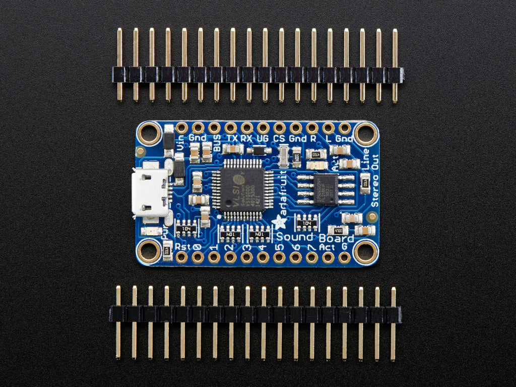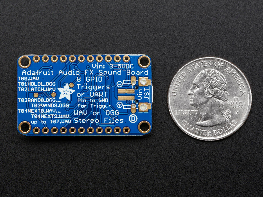 Don't get me wrong, I love the MP3 Music Maker shield and the Audio FX Sound Board + 2x2W Amp. And our Wave Shield is a dependable classic. But you either need an Arduino or they might be a little too big and powerful for your needs. So after a lot of engineering and tinkering we've come out with the Adafruit MINI Sound Board, the fastest way to add audio effects to a project, with a small footprint. We think this is the best sound board for props and costumes!