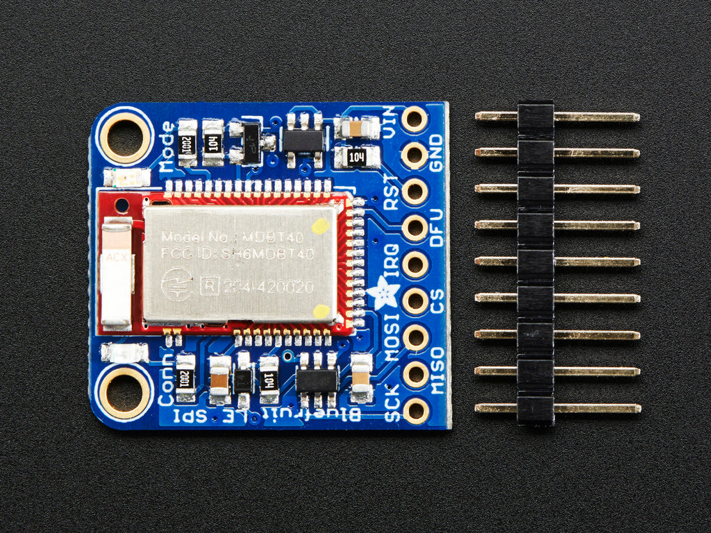 The Bluefruit LE SPI Friend makes it easy to add Bluetooth Low Energy connectivity to anything with 4 or 5 GPIO pins. With SPI, you don't have to worry about baud rates, flow control, or giving up a hardware UART port. Connect to your Arduino or other microcontroller using the common four-pin SPI interface (MISO, MOSI, SCK and CS) plus a 5th GPIO pin for interrupts (to let the Arduino know when data or a response is ready).