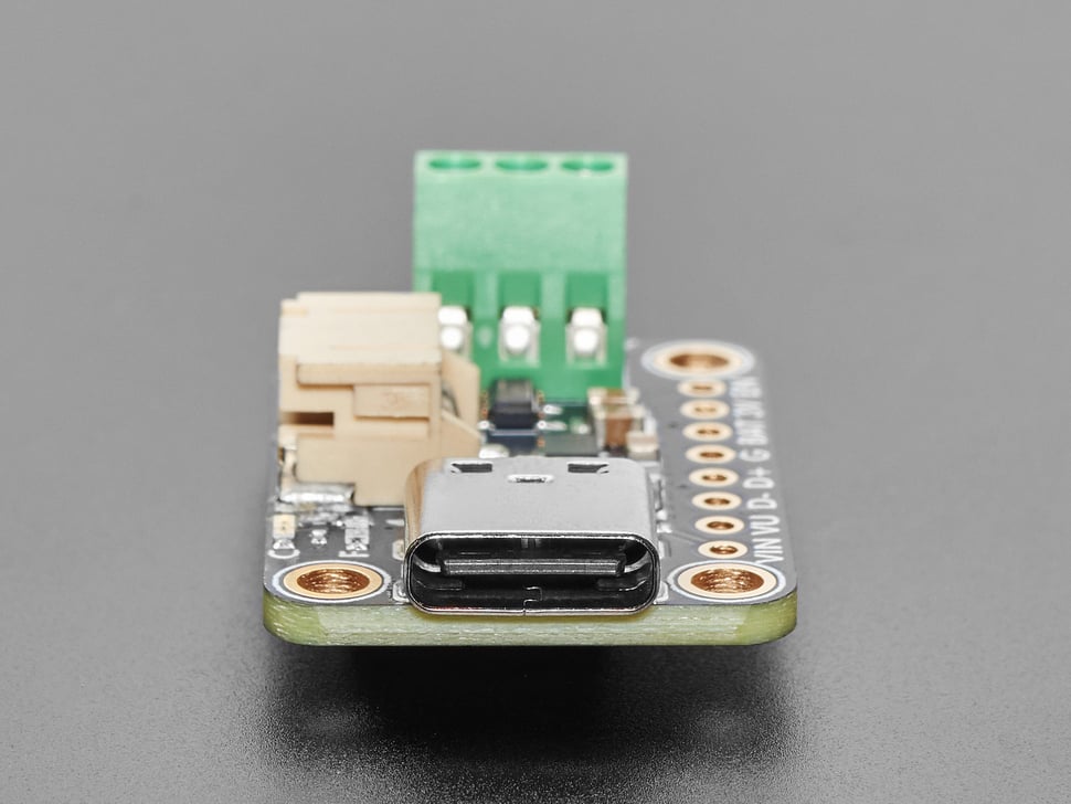 - USB Type C connector with 5.1k CC resistors so it will work with any computer or power supply to get 5V and up to 1A. Data lines available if needed, on the bottom breakout.