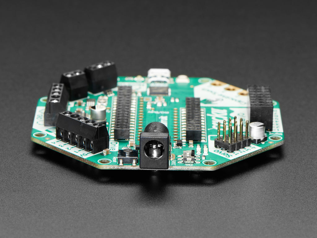 Since you'll be working with high-current devices, we wanted to have a good solid power supply system that minimizes risk of damage. The power supply has an 'eFuse' management chip that will automatically turn off if the voltage goes above 5.5V or below 3V and has over-current protection at 4A. Every motor driver has kick-back protection. We think this is a nice and durable board for robotics!