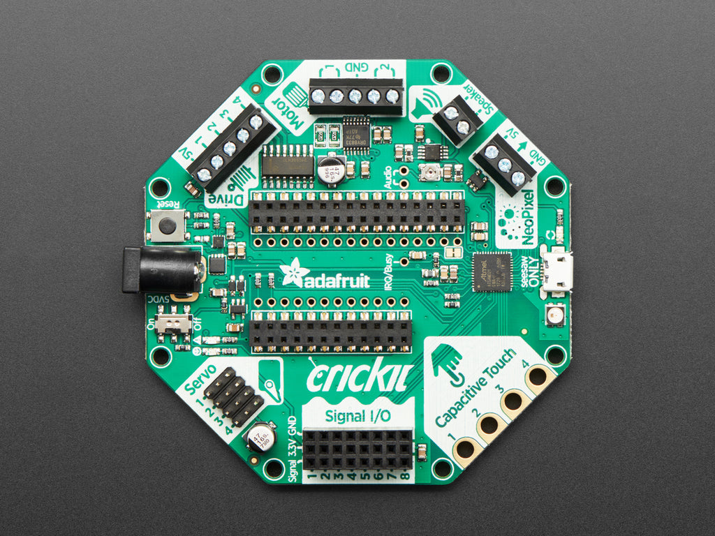 With that in mind, we designed Crickit - That's our Creative Robotics & Interactive Construction Kit. It's an add-on to our popular Feather ecosystem that lets you #MakeRobotFriend using CircuitPython, MakeCode (coming soon), or Arduino.