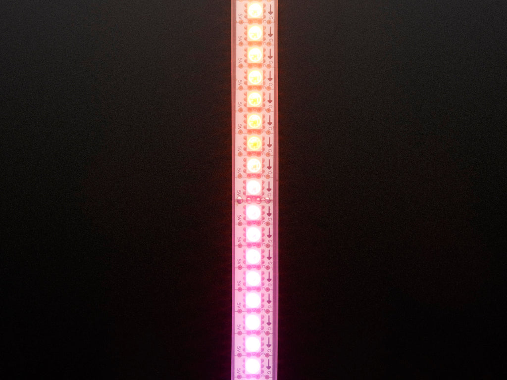This is half a meter of the 144 LED-per-meter version of our DotStar strips, on white flex PCB. We have 30 LED/m, 60 LED/m and 144 LED/m on both white and black flex PCB.