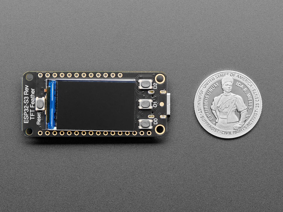 Like Missy Elliot, we like to "put our [Feather] down, flip it and reverse it" and that's exactly what we've done with this new development board. It's basically our ESP32-S3 TFT Feather but with the 240x135 color TFT display on the back-side not the front-side. That makes it great for panel-mounted projects, particularly since we've also got some space for 3 buttons to go along. It's like an all-in-one display interface dev board, powered by the fantastic ESP32-S3 WIFI module.
