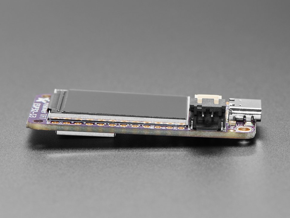 The color TFT is connected to the SPI pins and uses additional pins for control that are not exposed to the breakout pads. It's the same display as you see here, with 240x135 pixels and is IPS so you get bright color at any angle. The backlight is also connected to a separate pin so you can PWM the backlight up and down as desired.