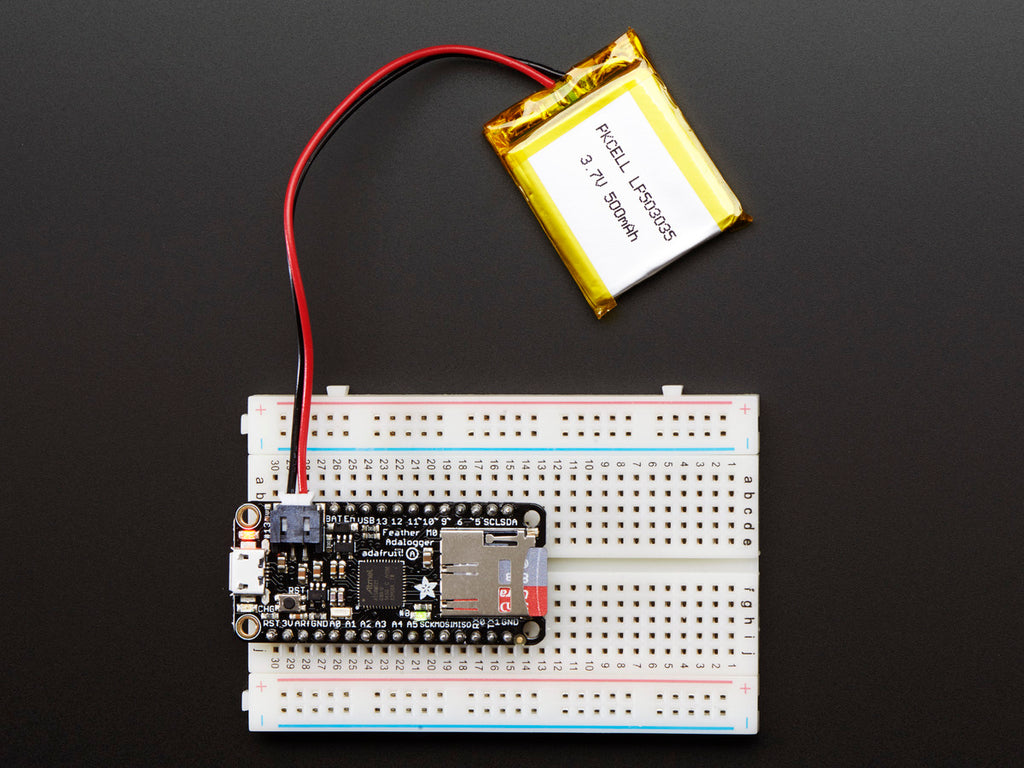 Comes fully assembled and tested, with a USB bootloader that lets you quickly use it with the Arduino IDE. We also toss in some header so you can solder it in and plug into a solderless breadboard. Lipoly battery, MicroSD card and USB cable not included (but we do have lots of options in the shop if you'd like!)