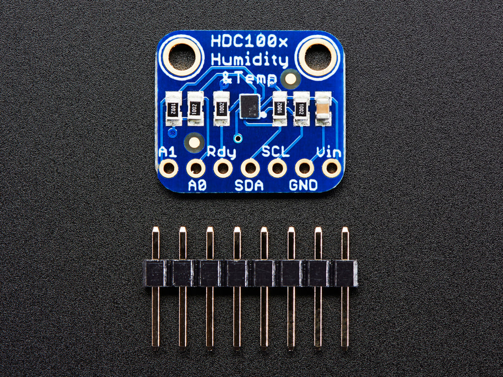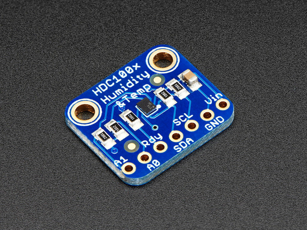 The HDC1008 sensor chip has 2 address-select pins, so you can have up to 4 shared on a single I2C bus. It's also 3-5V power and logic safe so you don't need any level shifters or regulators to use with a 5V or 3V microcontroller.