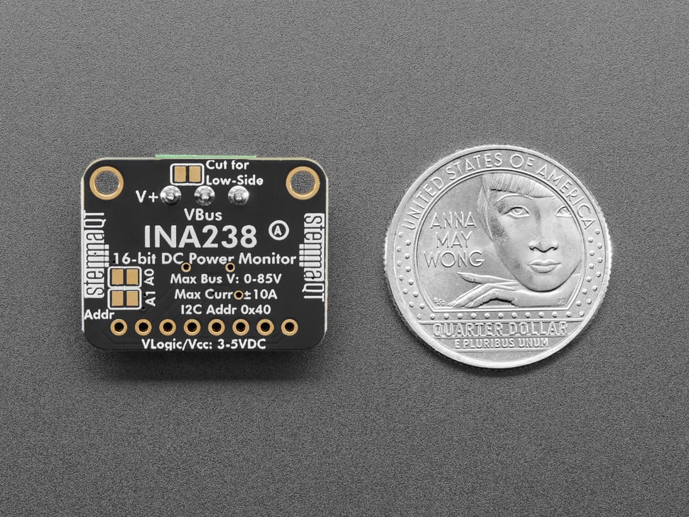 The INA238 is an amazing power monitoring chip, with best-of-everything support: up to 85VDC common-mode, high or low side measurements, 16-bit ADC for precision measurements from milliamp to Amp, and I2C interface for easy configuration of alerts, oversampling, gain adjustments and more!