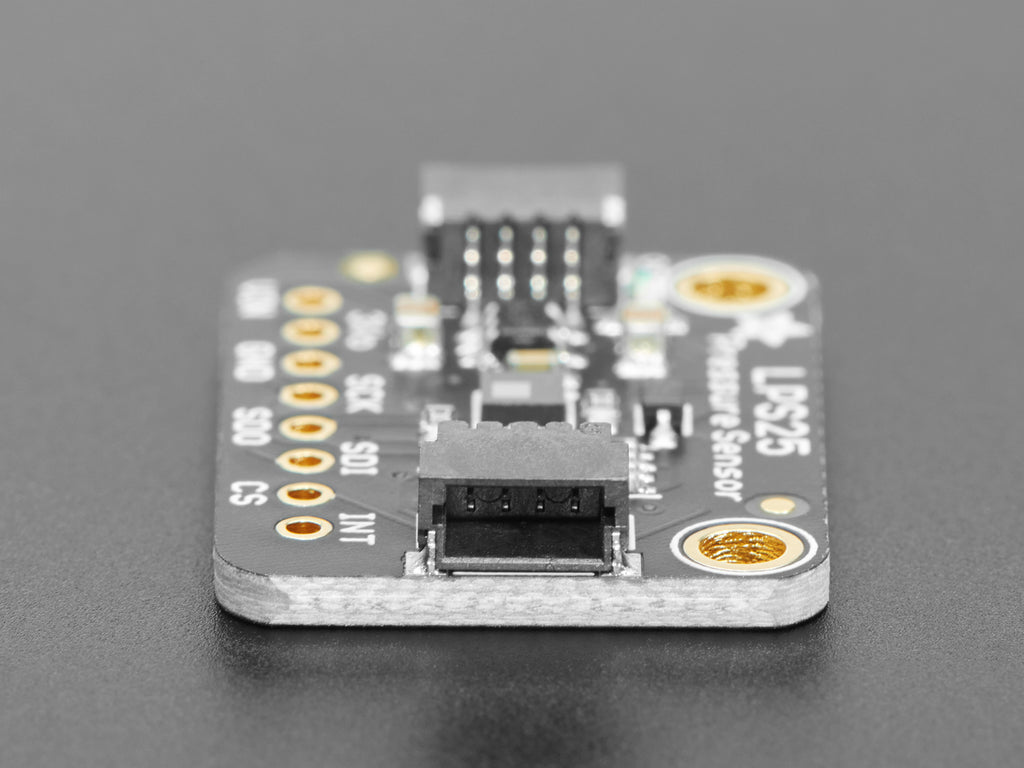 These days, helpful little sensors like the LPS25 are often quite little and tend to come in surface-mount packages that make them tricky to use with breadboards. With that in mind, we've taken the LPS25 and put it on a breakout board with level shifting circuitry and a voltage regulator. This means that not only can you use it with a breadboard, but you can use it with a wide range of devices that have either a 3.3V logic level, like a Raspberry Pi or CircuitPython compatible Metro M4 Express, or with a 5V logic level device like a Metro 328 or Arduino Uno.
