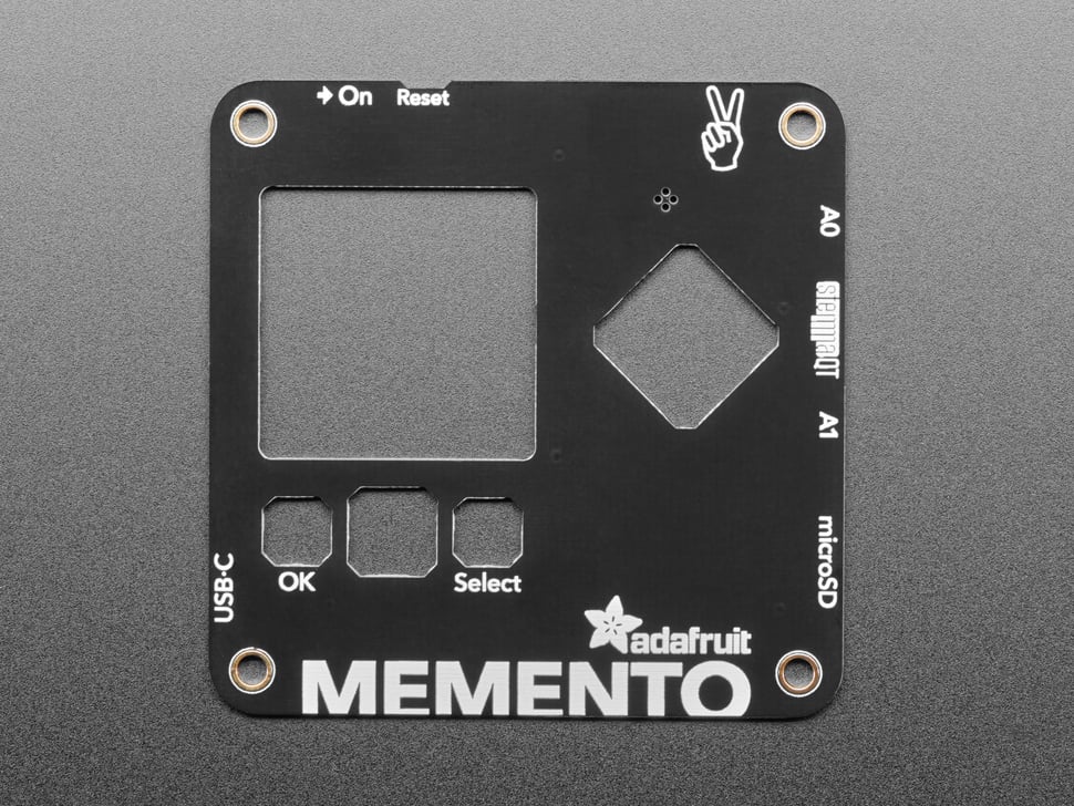 Enhance the functionality of your MEMENTO Camera with a sleek, uncomplicated enclosure that seamlessly blends into any environment. The enclosure is custom-designed to perfectly fit the TFT display, touch buttons, and camera lens, and features a front plate with an RGBW LED Ring boasting 8 luminous NeoPixels for stunning lighting possibilities.