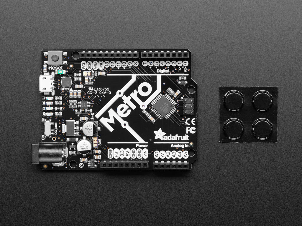 We also include 4 rubber bumpers to keep it from slipping off your desk. Metro shown with our 12x capacitive touch shield attached just to demonstrate the headers, but that shield is not included!