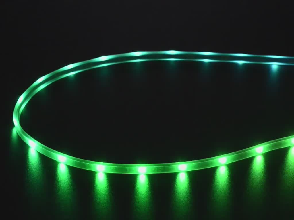 There are 30 RGB LEDs per meter, and you can control each LED individually! Yes, that's right, this is the digitally-addressable type of LED strip. You can set the color of each LED's red, green and blue component with 8-bit PWM precision (so 24-bit color per pixel). The LEDs are controlled by shift-registers that are chained up down the strip so you can shorten or lengthen the strip. Only 1 digital output pin are required to send data down. The PWM is built into each LED-chip so once you set the color you can stop talking to the strip and it will continue to PWM all the LEDs for you