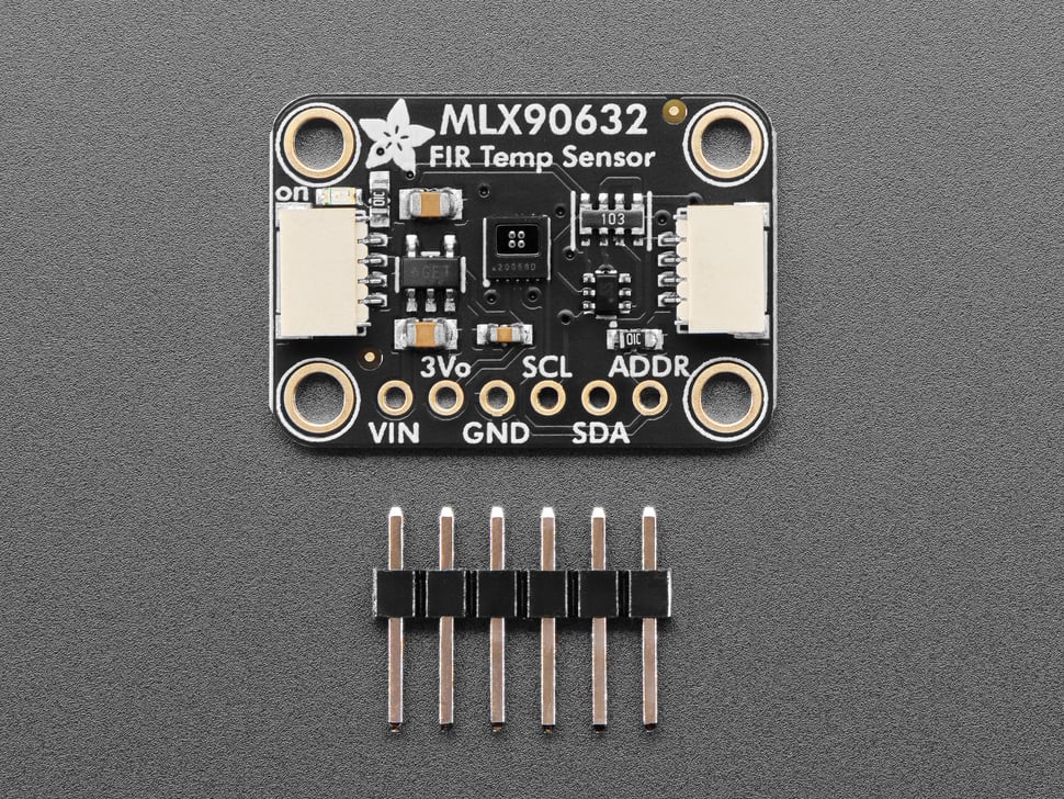 Melexis is famous for their infrared sensor technology (we stock a lot of their IR thermal sensors!) and the MLX90632 is pick-and-placeable with a I2C interface which makes it a great match for any microcontroller or microcomputer. This breakout board comes with the MLX90632SLD-DCB which is 'medical grade'. The medical version is factory calibrated with an accuracy of ±0.2˚C within the narrow object temperature range from 35 to 42˚C for medical applications. You can also put it into 'extended' mode for measuring object temperatures from -20 to 100˚C. Of course, you can also measure the 'local' temperature on chip as well.