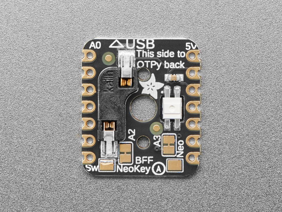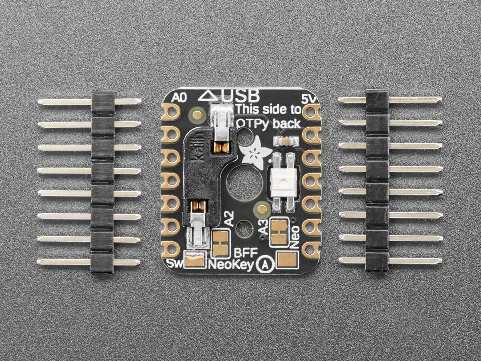 We call this the Adafruit NeoKey BFF - a "Best Friend Forever". When you were a kid you may have learned about the "buddy" system, well this product is kinda like that! A board that will watch your QT Py's back and give it more capabilities.