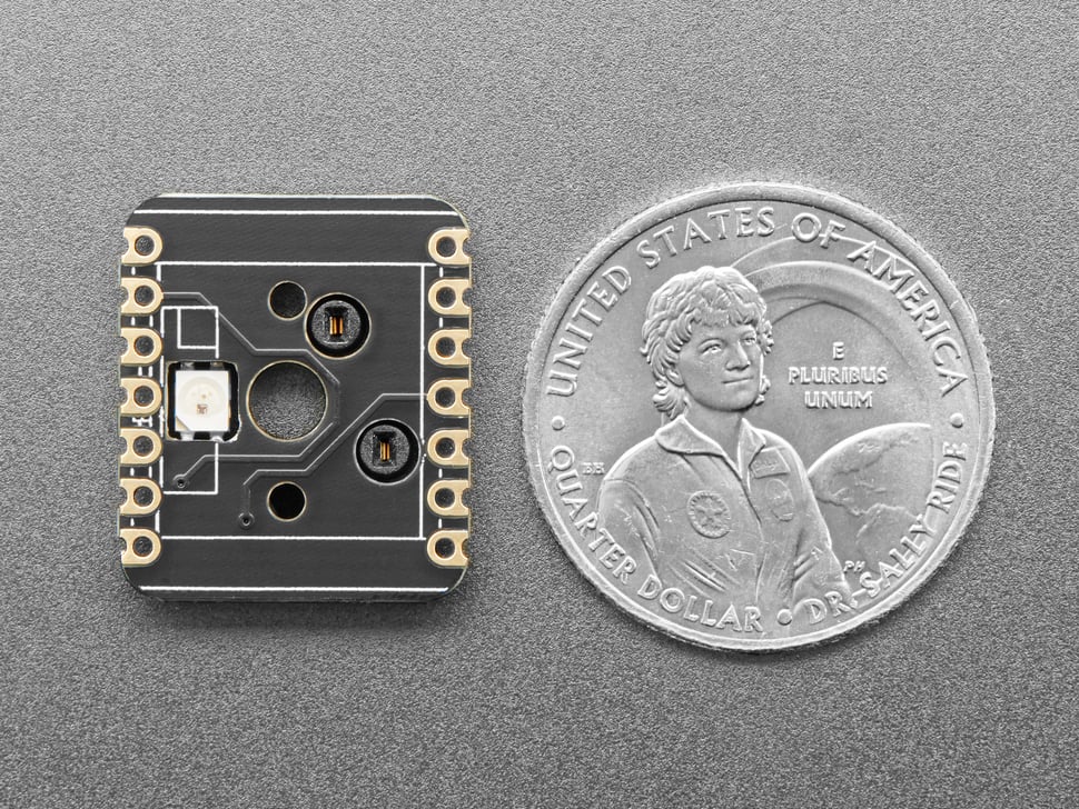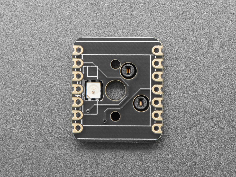 This PCB is designed to fit onto the back of any QT Py or Xiao board; it can be soldered into place or use pin and socket headers to make it removable. Onboard is a Kailh socket, which means you can plug in any MX-compatible switch instead of soldering it in. You may need a little glue to keep the switch in place: hot glue or a dot of epoxy worked fine for us. Also comes with a single reverse-mount NeoPixel pointing up through the spot where many switches would have an LED to shine through.