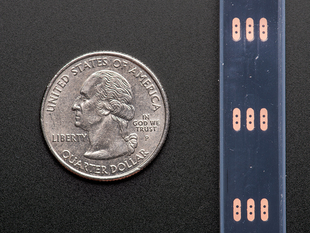 These LED strips are even more fun and glowy. There are 60 RGB LEDs per meter, and you can control each LED individually! Yes, that's right, this is the digitally-addressable type of LED strip. You can set the color of each LED's red, green and blue component with 8-bit PWM precision (so 24-bit color per pixel). The LEDs are controlled by shift-registers that are chained up down the strip so you can shorten or lengthen the strip. Only 1 digital output pin are required to send data down. The PWM is built into each LED-chip so once you set the color you can stop talking to the strip and it will continue to PWM all the LEDs for you.