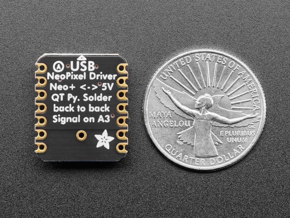 We call this the Adafruit NeoPixel Driver BFF - a "Best Friend Forever". When you were a kid you may have learned about the "buddy" system, well this product is kinda like that! A board that will watch your QT Py's back and give it the power and support to drive NeoPixel strips, rings, and panels.