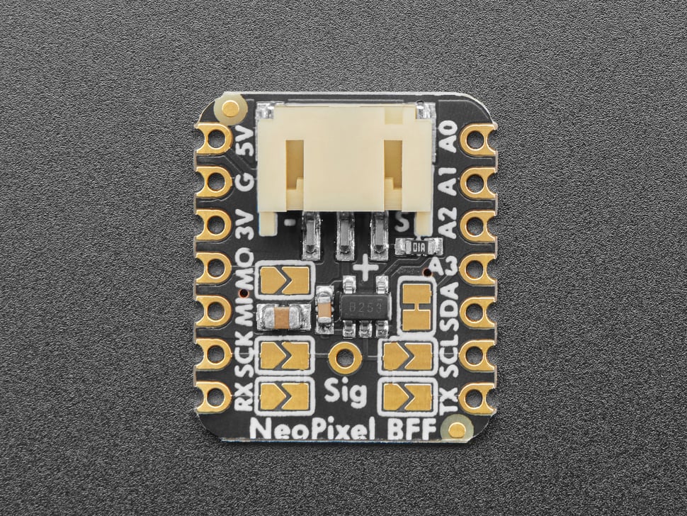If using one of our NeoPixel strips with a JST-PH connector on them already, you can just plug it right in for instant lights. If you're using a common JST SH (black in-line) connector on the strips, you can use a JST-PH-to-female-header cable and use that to plug into the pins on the input of the SH port and/or can jam the wires into the header sockets.