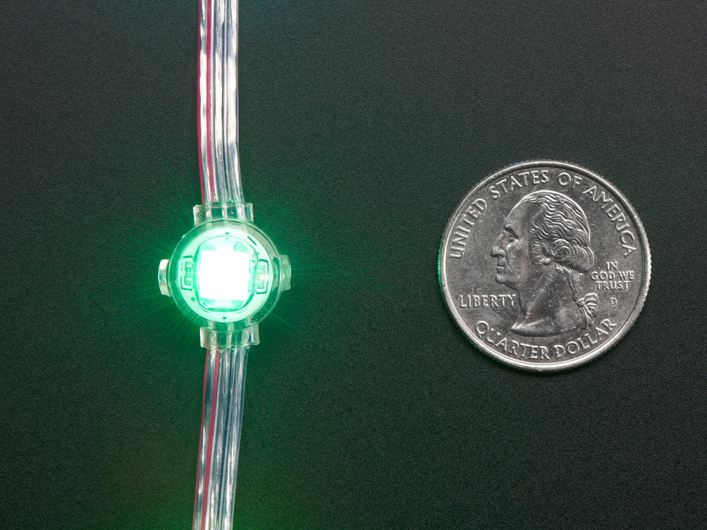 Each strand has 20 dots with a single NeoPixel inside with cabling connecting them. The dots are 2" apart, we also have a version that is 4" apart.