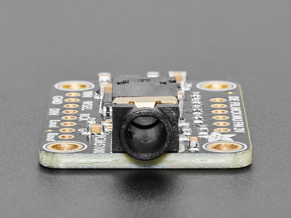 This breakout makes I2S digital audio easy: all you need to do is power it with 3~5VDC, and provide BCLK (bit clock), WSEL (left/right word select), and DIN (data in). The data lines are 3.3V logic only. By default it's configured for I2S but you can also do Left-Justified by toggling the Format pin. Audio can be 16, 24 or 32-bit wide, the chip will automagically determine the right format from the WSEL / BCLK ratio. No MCLK pin is needed, the chip will auto-generate it internally from the bit clock - or you can provide it on the MCLK input if you want.