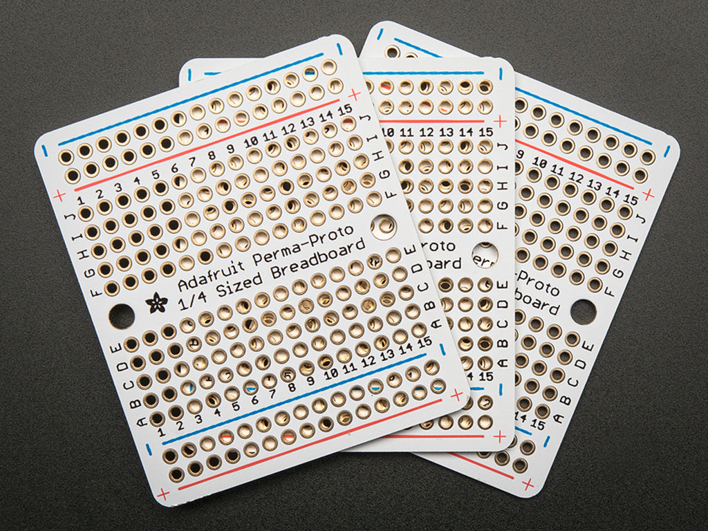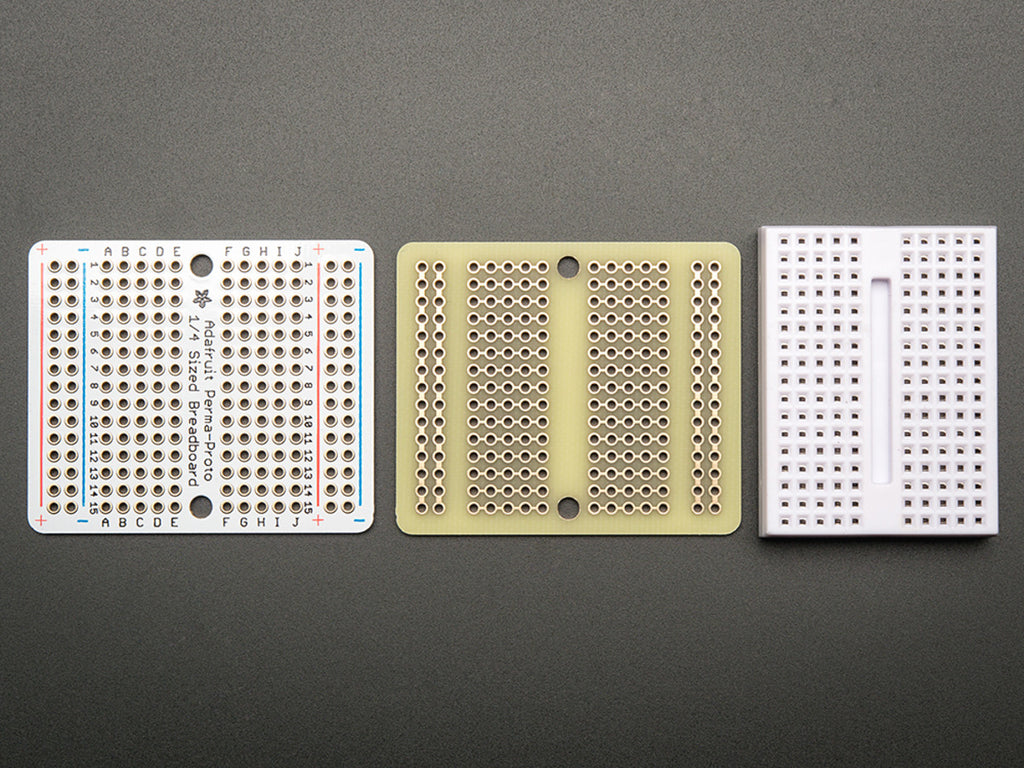 Customers have asked us to carry basic perf-board, but we never liked the look of most basic perf: its always crummy quality, with pads that flake off and no labeling. Then we thought about how people actually prototype - usually starting with a solderless breadboard and then transferring the parts to a more permanent PCB. That's when we realized what people would really like is a proto board that makes it easy!