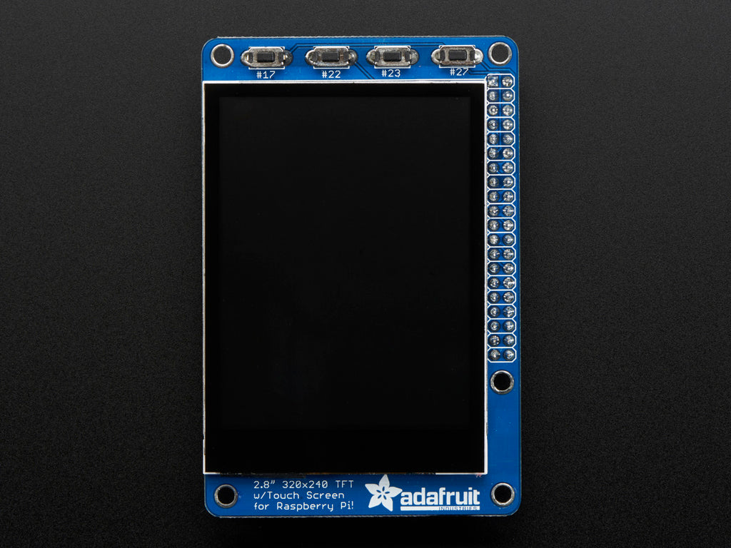 Is this not the cutest little display for the Raspberry Pi? It features a 2.8" display with 320x240 16-bit color pixels and a capacitive touch overlay. That's right, instead of a resistive touchscreen, which requires a fingernail or stylus, you can now use a fingerpad. The screen looks much nicer, with a black bezel and glass overlay. If you don't need a capacitive touchscreen, check out the resistive touch version.