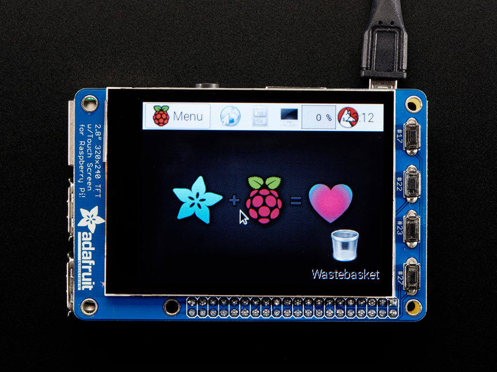 Use it for console access or easily pop up X11 onto the PiTFT for a mini monitor, although its rather small at 320x240. Instead, we recommend using PyGame or other SDL-drawing programs to write onto the frame buffer.