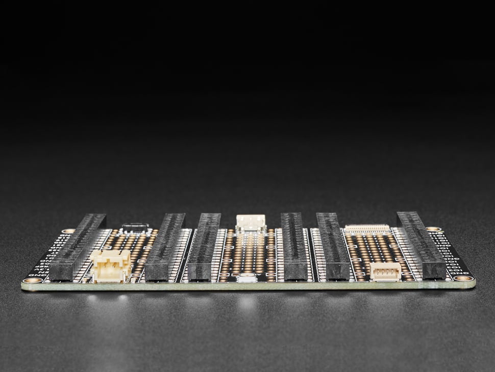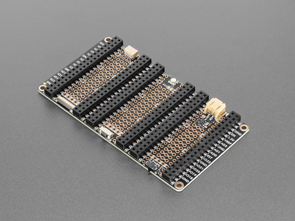 There is an extra set of 4 breakout holes next to the JST SH if you want more I2C connections or want to re-assign the I2C port. - 3 hole-connected strips are in the center areas. You can cut the traces between the holes, but they're intended to be treated like a mini-mini breadboard